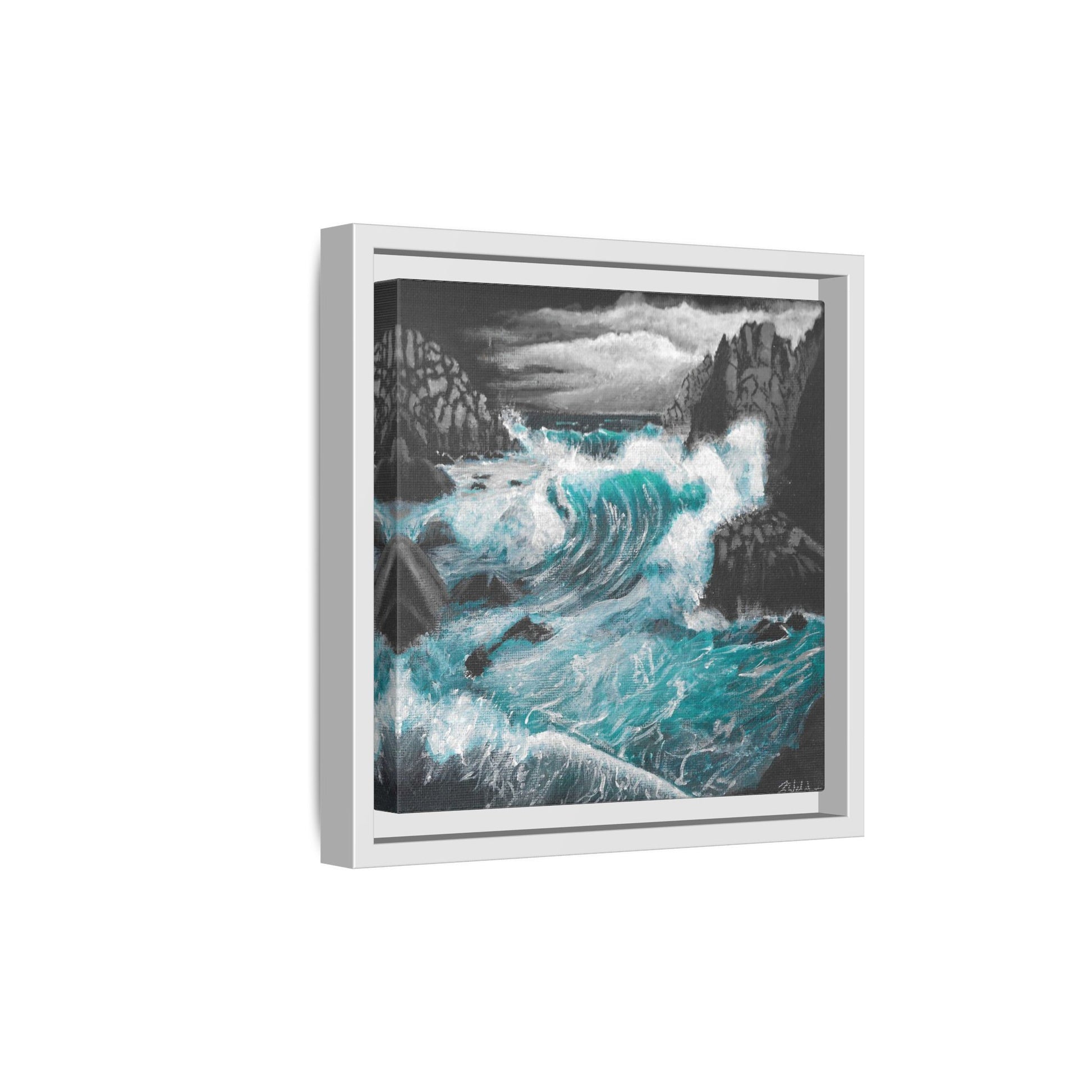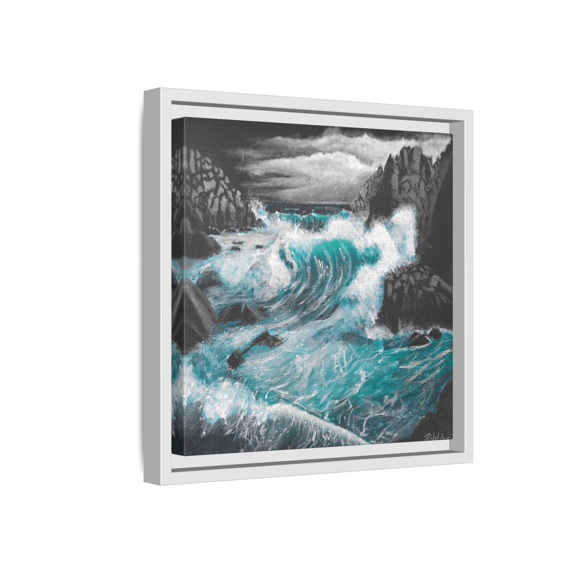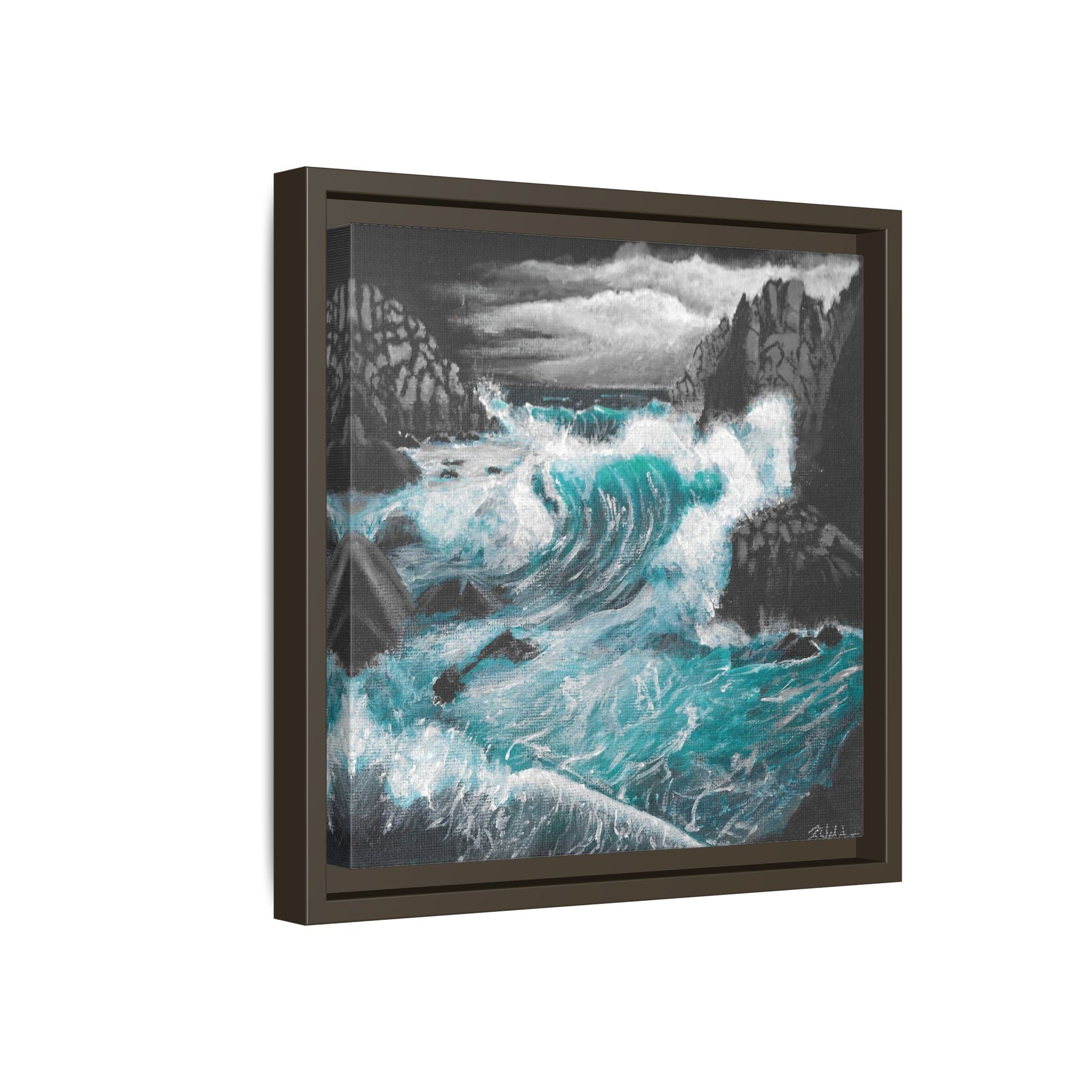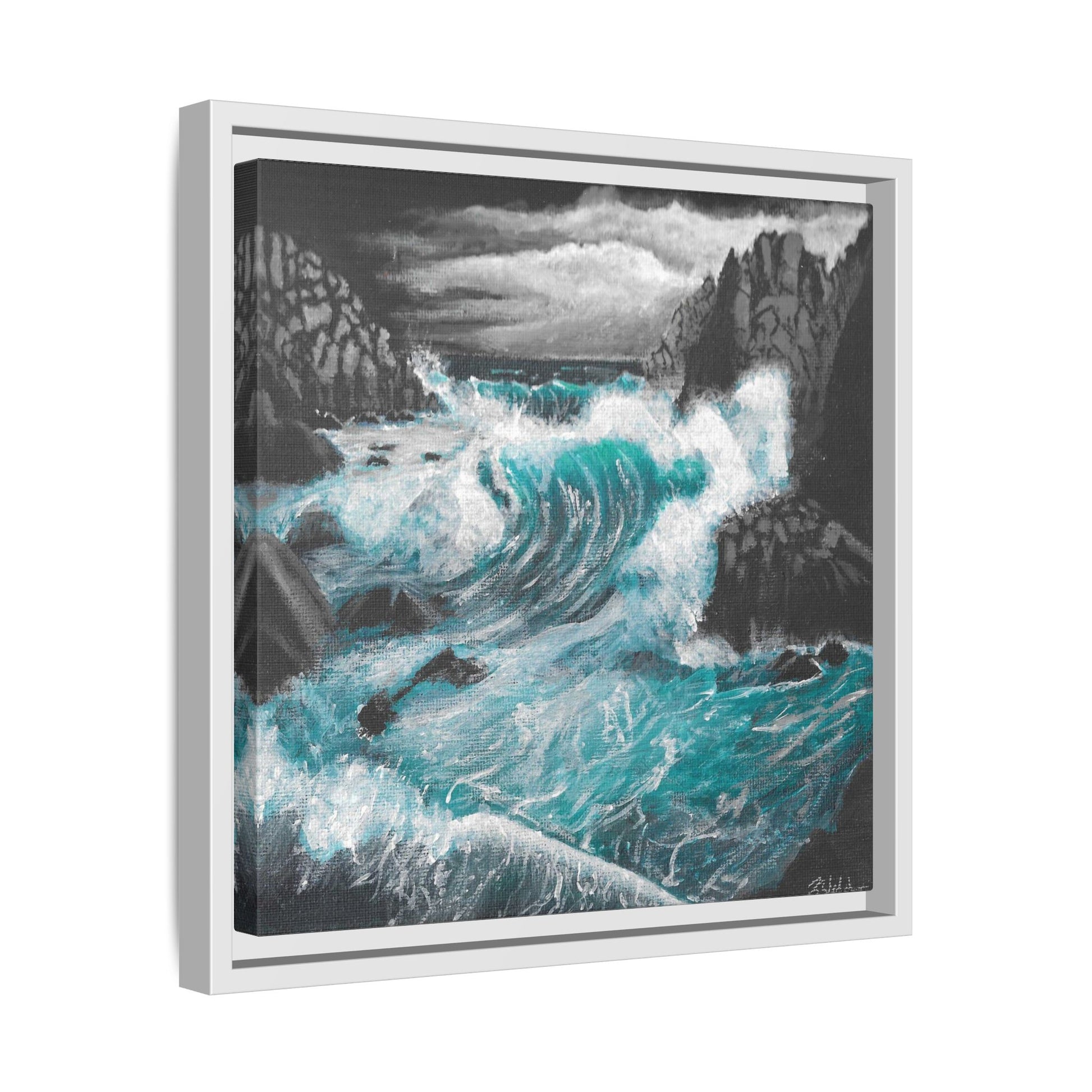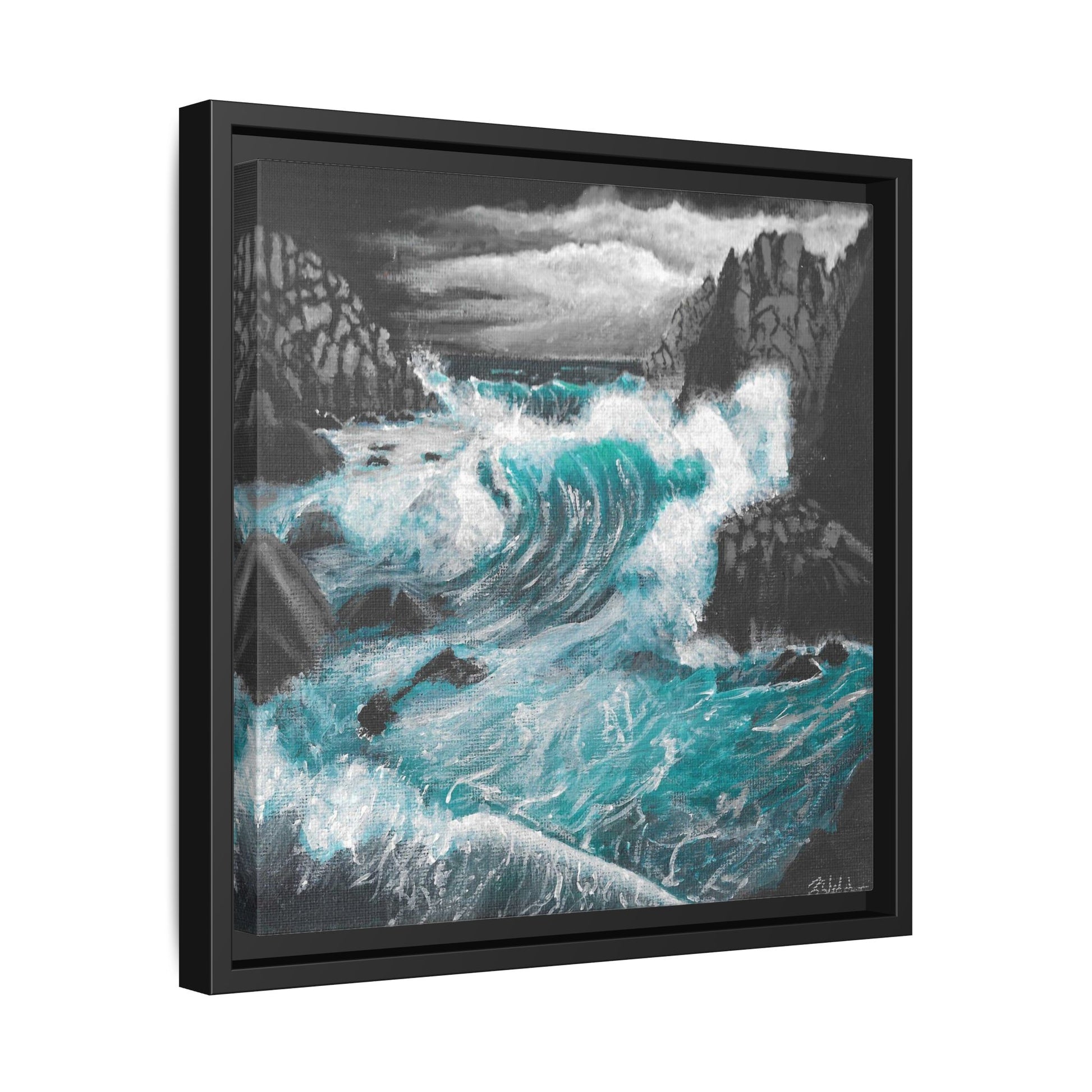 Immerse yourself in the moody and dynamic energy of dark storm waves crashing against rocks with this Acrylic Painting by Kerri Welden canvas print. Perfect for art enthusiasts and nature lovers looking to add a touch of drama to their space. Ideal for decorators aiming for a bold statement piece to complement their modern decor. Great for gifting during birthdays, holidays, or housewarmings.