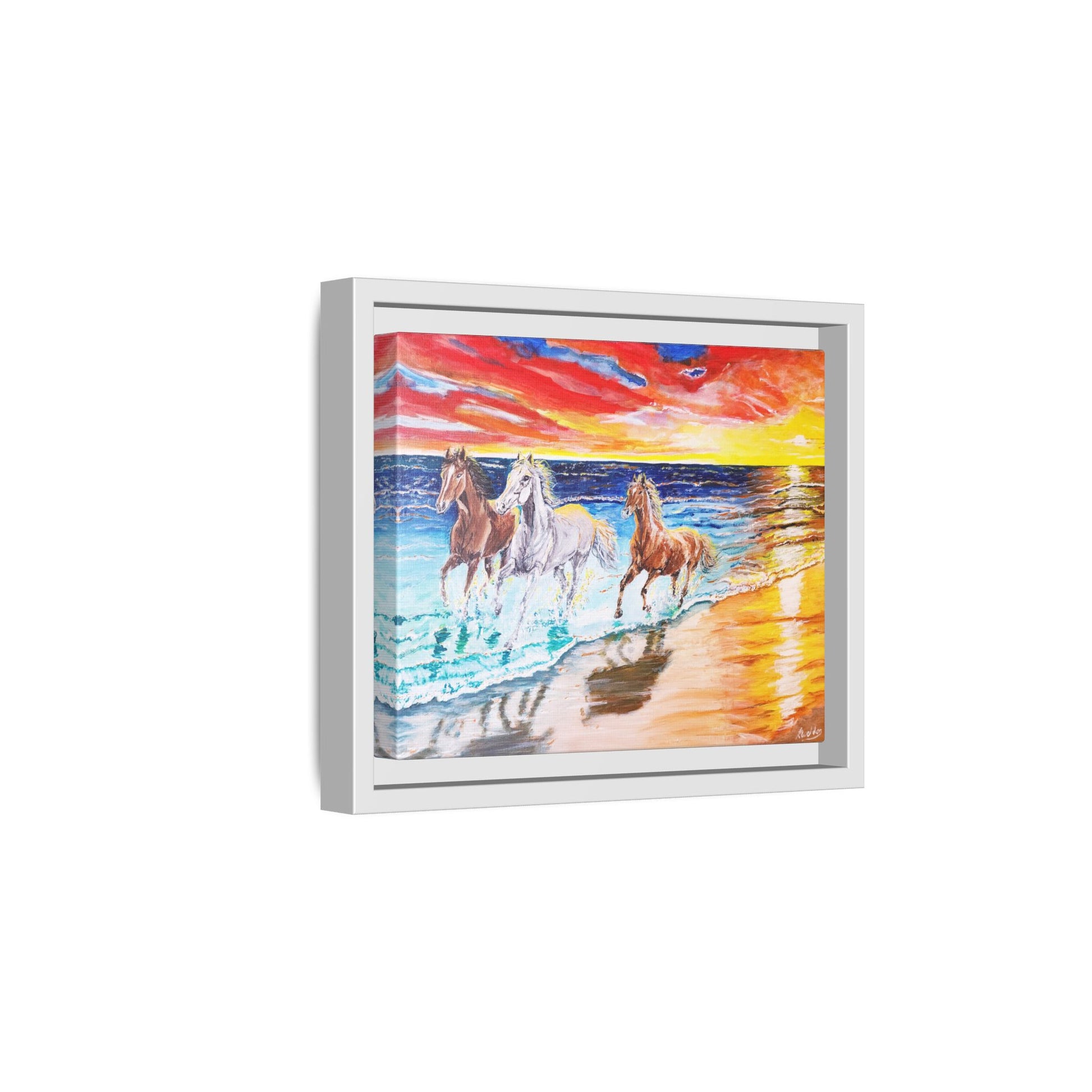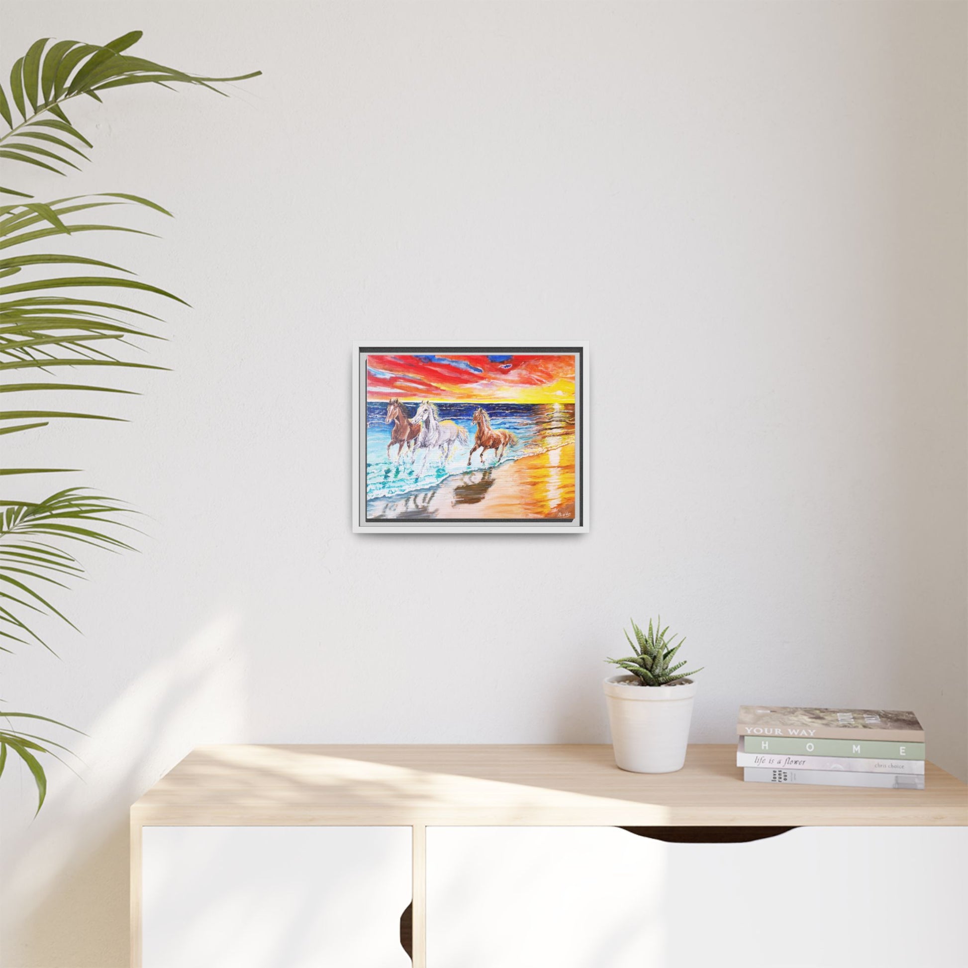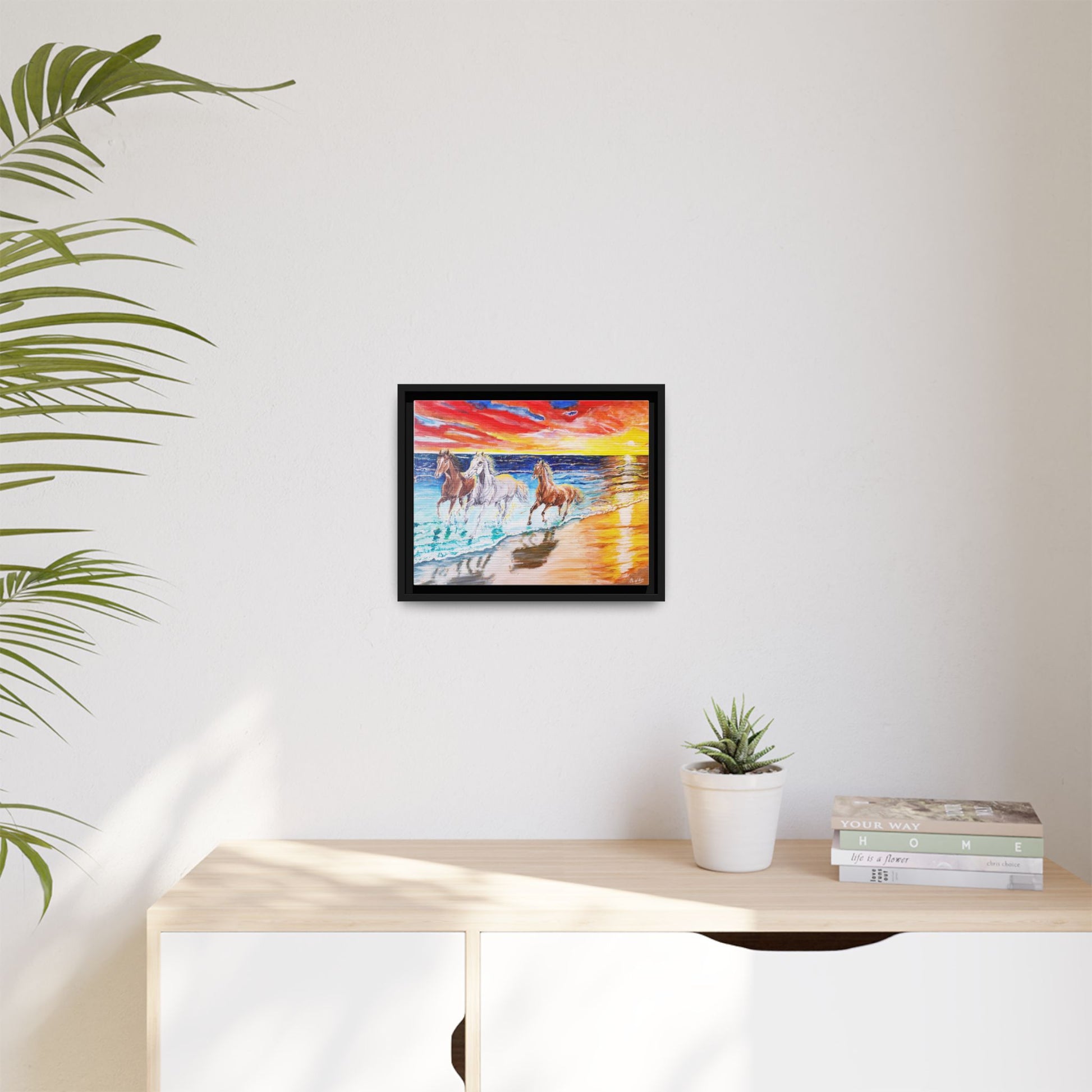 Elevate your space with this stunning framed canvas artwork that radiates vibrancy and life. Ideal for horse lovers and art enthusiasts, this piece captures the energy and beauty of wild horses running along a sunlit beach, evoking feelings of freedom and joy. Perfect for brightening up a living room, office, or bedroom, it creates an inviting atmosphere that inspires positivity and creativity. This artwork is an excellent gift for birthdays, housewarming parties, or just to treat yourself. Celebrate special occasions or simply add a pop of color to your home decor with this unique masterpiece that blends seamlessly into any setting.